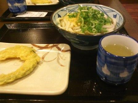 うさぎは冷やかけうどんとカボチャの天ぷら。