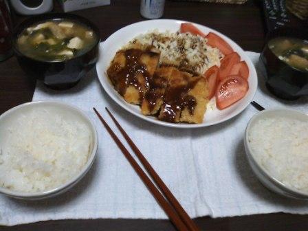あとはキャベツ千切りとトマトとほうれん草の味噌汁で
