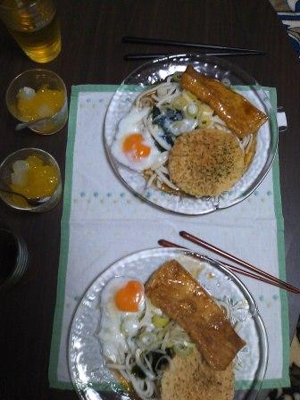 あとはおあげとネギと生海苔と買ってきたかき揚げ。