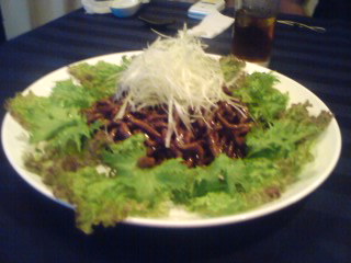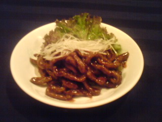 牛肉の細切り味噌炒め野菜添え。