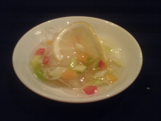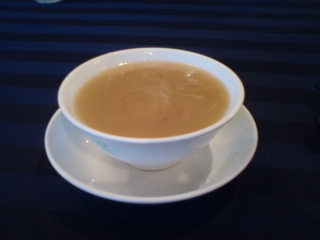 細切り葱入りフカヒレスープ。
