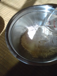 粉に水を入れてこねこね。