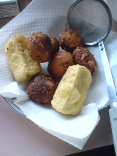 お豆腐であられも作りました。