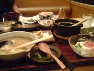 彼は焼き魚、肉豆腐、揚げもの、デザート付の